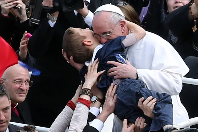 1. Đức Thánh Cha Phanxicô ôm lấy một cậu bé khuyết tật trong buổi ban phép lành Urbi et Orbi đầu tiên của ngài.