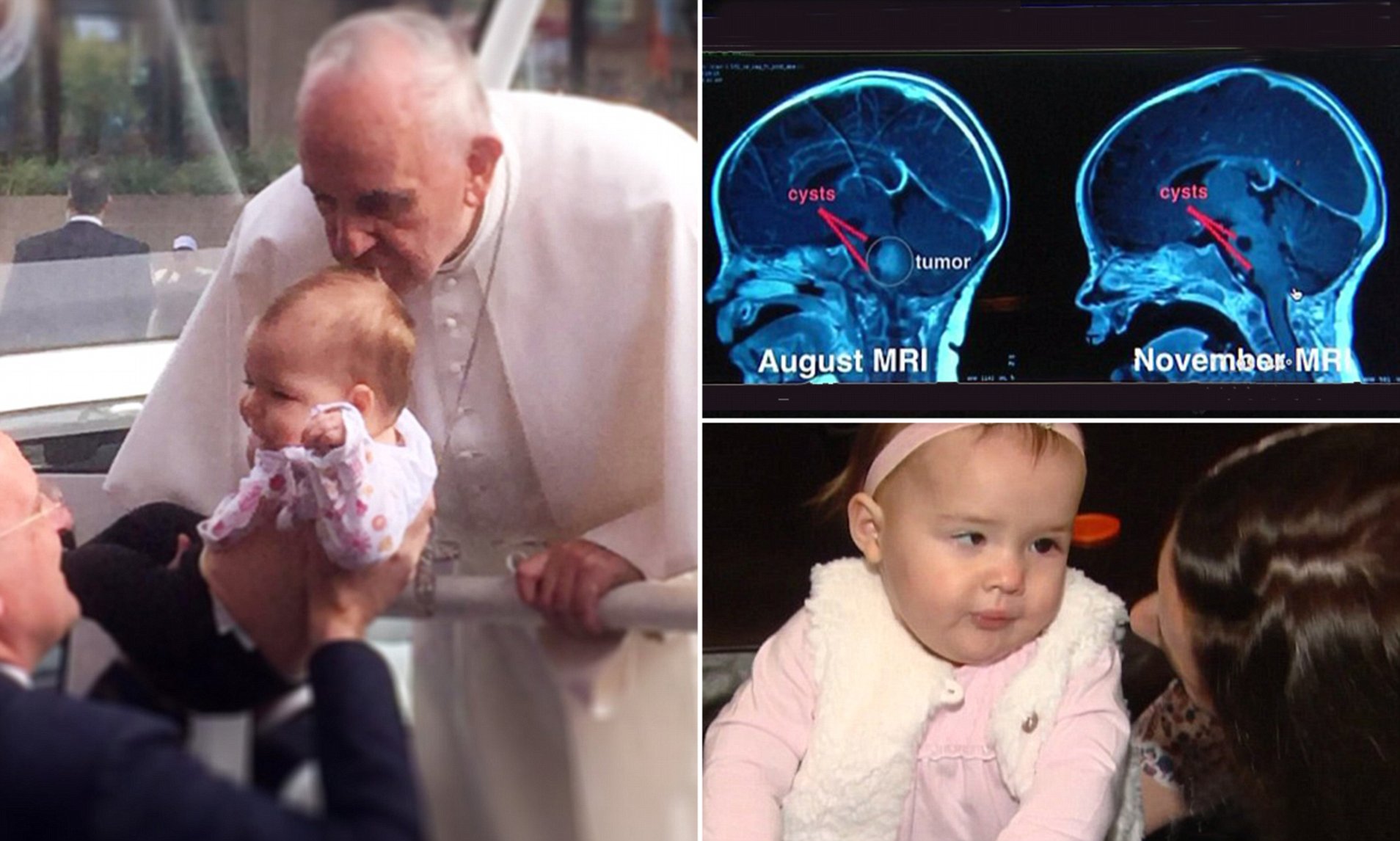 4. Cô bé bị u não được Đức Thánh Phanxicô hôn và khối u đã teo lại.