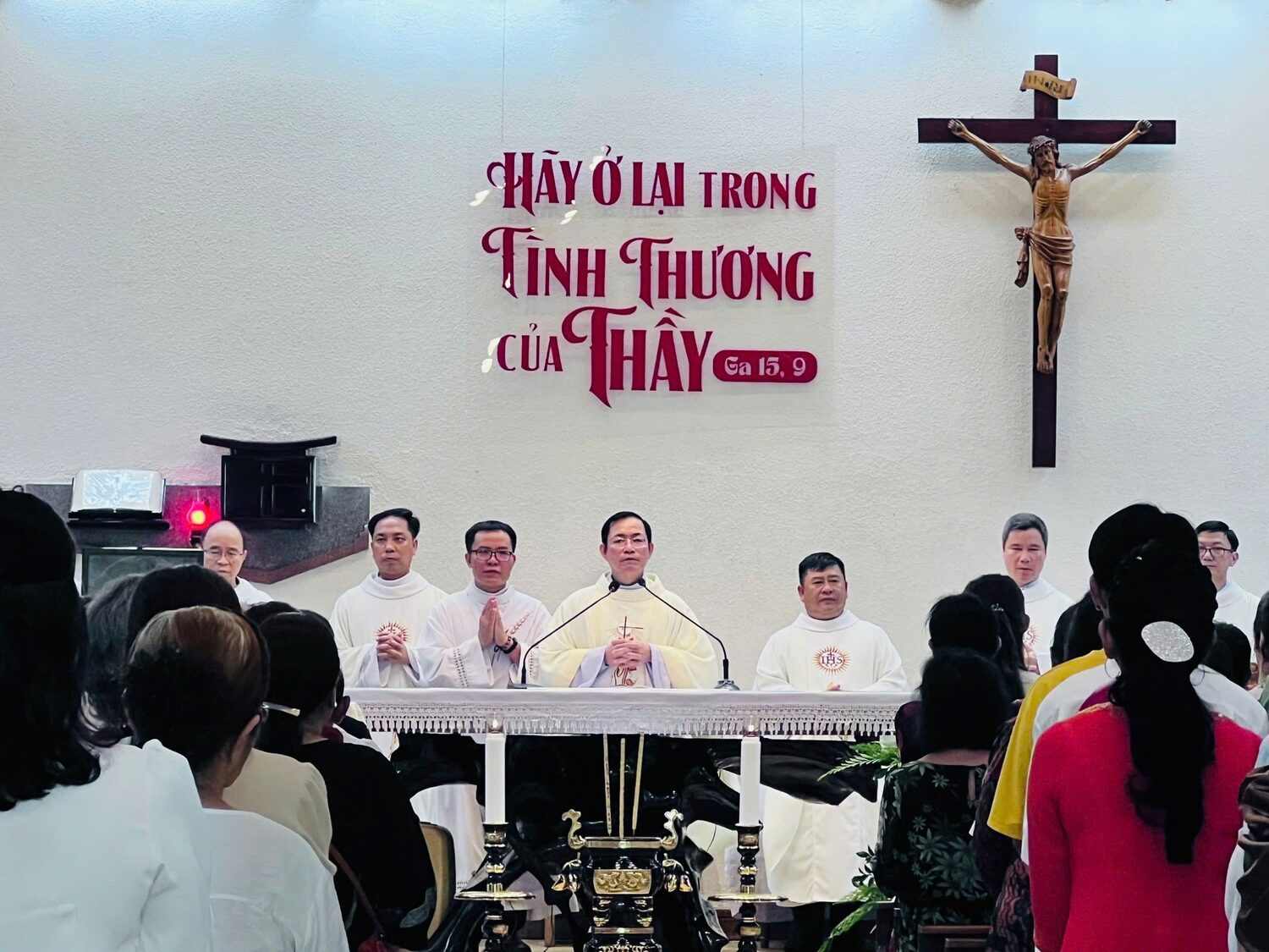 Sau Thánh lễ, cộng đoàn cùng chia sẻ bữa cơm thân mật tại hội trường Học viện Dòng Tên trong bầu khí ấm cúng, đậm tình thân ái.