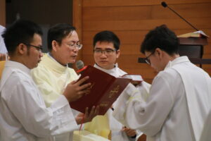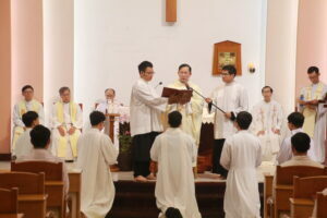 Với người học viên Dòng Tên, 3 ngày tĩnh tâm (triduum) giữa hai học kỳ là thời gian của ân sủng và tạ ơn, vì anh em không chỉ được nghỉ ngơi đôi chút sau một học kỳ “dùi mài kinh sử” và truy tìm chân lý trong đường học vấn, nhưng còn được lắng đọng tâm hồn bên Chúa Giêsu, Đấng mà anh em ao ước bước theo sát gót hơn mỗi ngày. Và theo truyền thống, sau triduum, các học viên thần học được trao thừa tác vụ Đọc sách và Giúp lễ, như một phần của tiến trình huấn luyện, ghi dấu từng bước tiến tới chức thánh Linh mục của quý thầy vì các thừa tác vụ này được trao cho mọi ứng viên sẽ lãnh chức thánh (x. Giáo Luật, điều 1035 §1). Các thừa tác vụ được Mẹ Giáo Hội thiết lập, xưa gọi là các “chức nhỏ”, với mục đích chính yếu là để phục vụ dân Thiên Chúa, trở thành tôi tớ của Lời và người phục vụ Thánh Thể. Chính Thiên Chúa, qua các dấu chỉ của nghi thức trao thừa tác vụ, tuôn đổ ân huệ của Người xuống trên những người được tuyển chọn, hầu giúp họ chu toàn thừa tác vụ được ban để phục vụ dân Người.