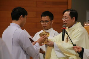 Lúc 6 giờ sáng ngày 31/12/2025, tại nhà nguyện Học viện Thánh Giuse - Dòng Tên Việt Nam, cha Giám Tỉnh Giuse Phạm Tuấn Nghĩa, S.J., đã chủ tế Thánh lễ kết thúc triduum (ba ngày tĩnh tâm giữa hai học kỳ) và trao các thừa tác vụ Đọc sách và Giúp lễ cho quý thầy thần học. Hiện diện trong Thánh lễ có cha Viện Trưởng Barnaba Vũ Minh Trí, S.J., quý cha trong Ban Huấn Luyện Học viện, và toàn thể anh em học viên của Dòng.