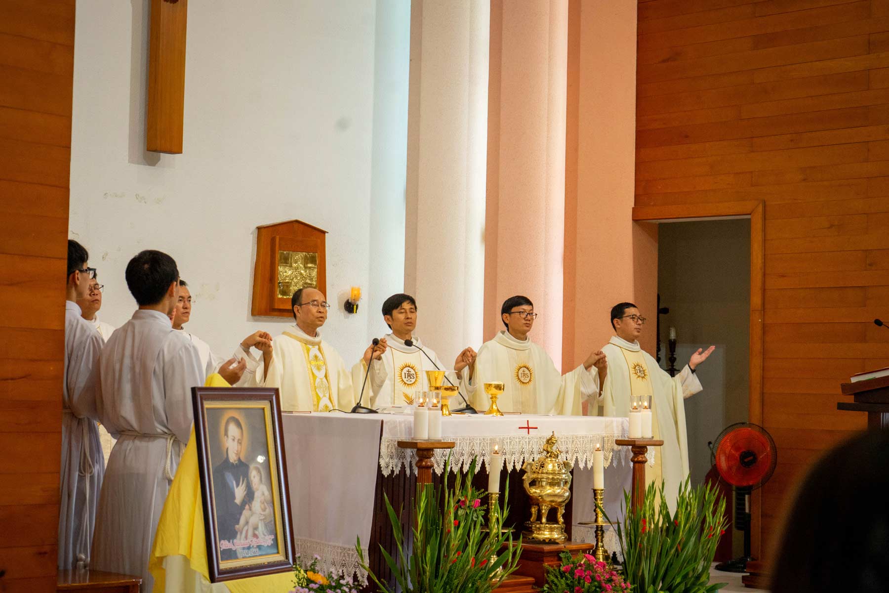 Trong Thánh lễ, đồng tế với cha Barnaba Vũ Minh Trí S.J còn có cha Đặc trách Phaolô Nguyễn Hữu Phong S.J; cha Giuse Ngô Văn Sơn S.J; cha Đaminh Lê Văn Luận S.J, cha Gioan Phạm Duy Anh S.J, thầy Phó tế Vinhsơn Nguyễn Hoàng Vũ S.J cùng với sự hiện diện của quý đồng hành, quý ân nhân, đông đảo các bạn sinh viên Vùng Thủ Đức và các nhóm bạn.