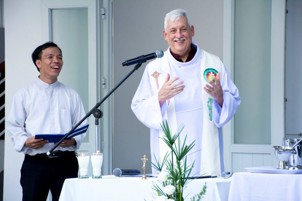 On his third day in Vietnam (December 4), Fr General Arturo Sosa visited the Sacred Heart Novitiate where he met the 34 novices. He then proceeded to the Candidates House located within the compound of St Michael's Church run by the Jesuits. He met the 90 candidates and blessed their new building. The candidates welcomed Fr General with a lion dance, songs and a short dramatization of the protomartyr of Vietnam, Blessed Andrew Phu Yen, companion of Fr Alexandre de Rhodes SJ. Later in the evening, Fr Sosa presided at the Final Vows of Fr Anthony Nguyen Cao Thang SJ, Fr Paul Nguyen Thai Son SJ and Fr Andrew Pham Hoa Lac SJ.
